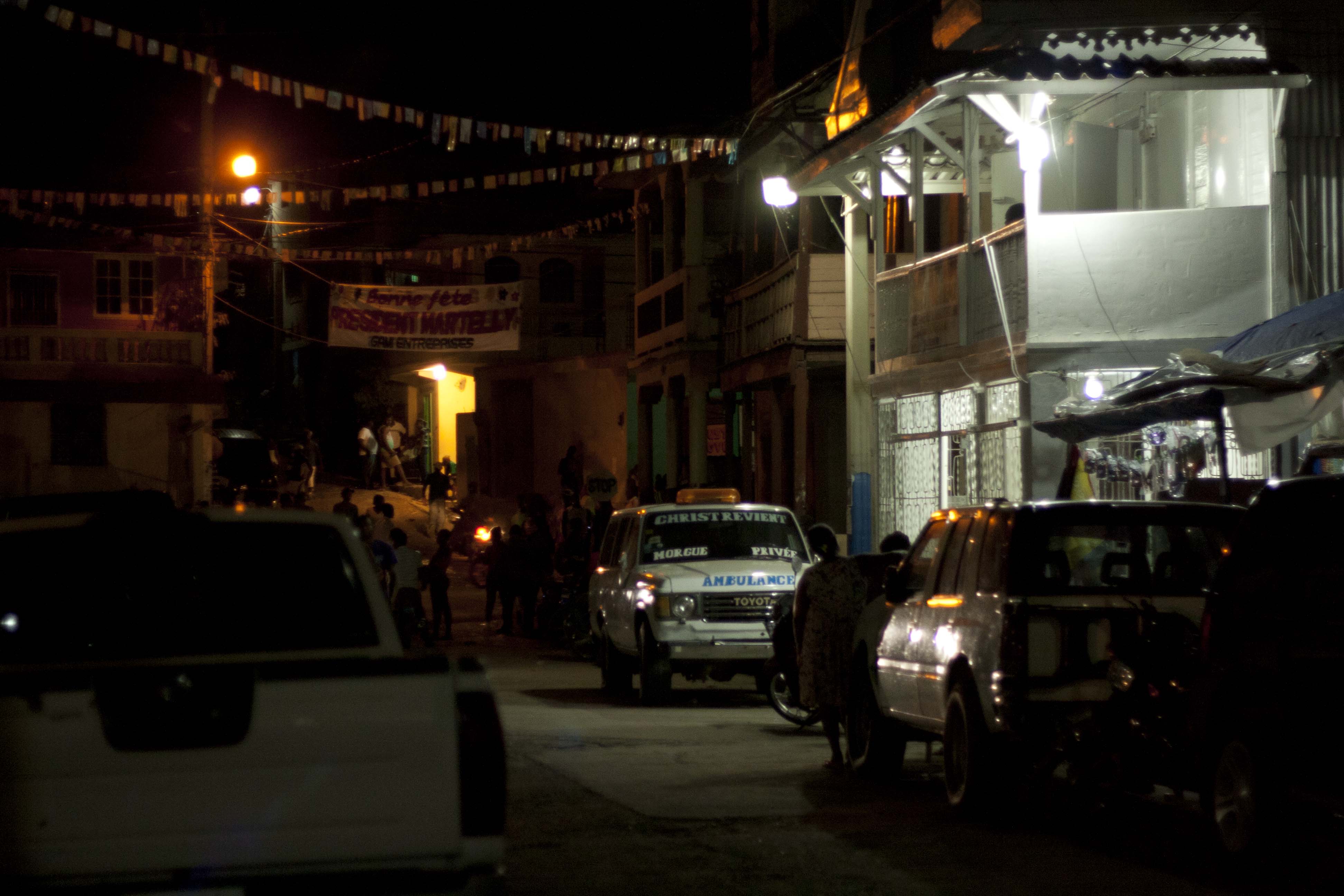 Refoulés du bar dansant pour cause de port de sandales, on se rabat sur le magasin de cds piratés du coin de la rue, qui diffuse en continu et à toute blinde toutes sortes de sons. Ce soir, c’est classiques du konpa, on est contents; un ami haïtien, toujours prêt, initie les copines françaises à l’art du déhanchement. La brochette de clients qui sirotent leur Prestige, la marchande de fritaille, les motos-taxi, tous nous observent en rigolant :